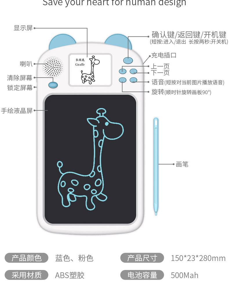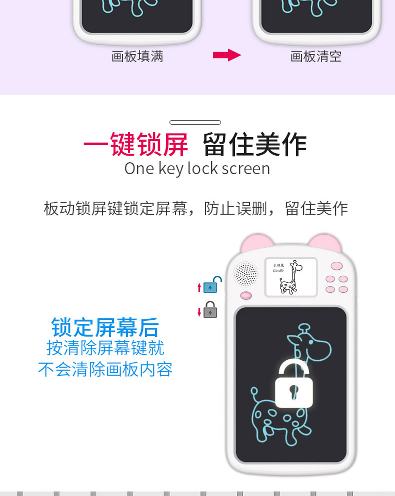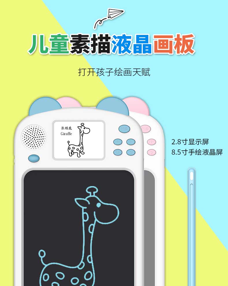 泥娃娃儿童绘画板便携手写板光能电子小黑板儿童绘画涂鸦画板带液晶显示提示
